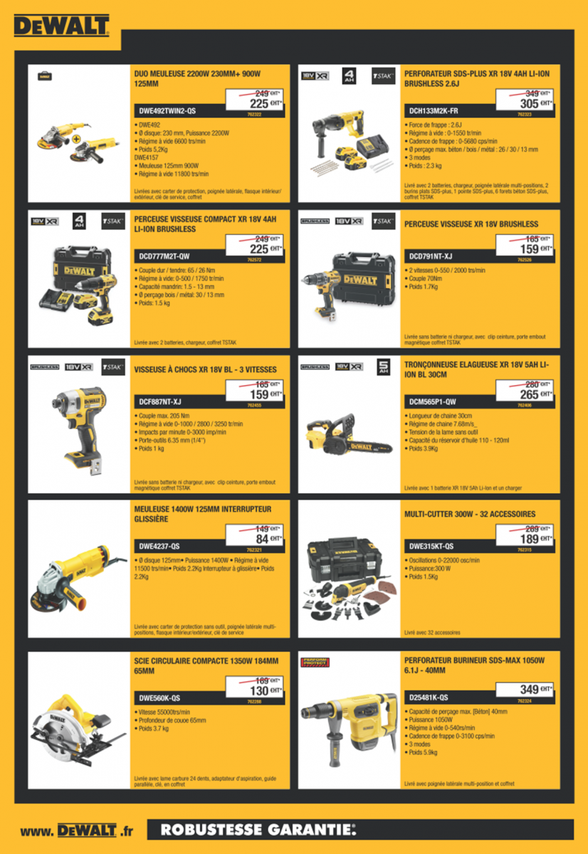 prix promos sur l'outillage électroportatif : meuleuse, perforateur, scie circulaire, multi cutter, perceuse visseuse, ou encore tronçonneuse !