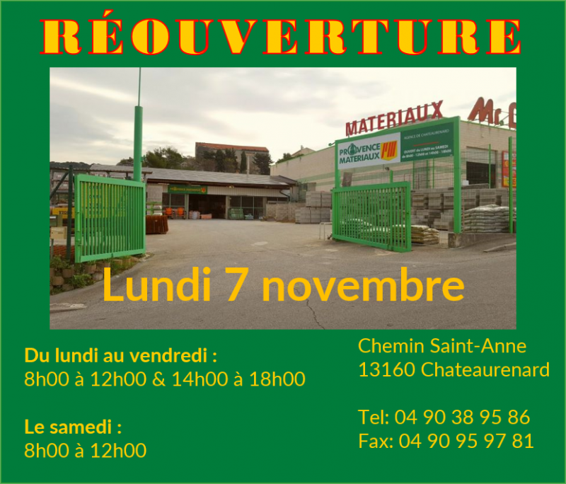 Nous sommes heureux de vous annoncer la réouverture de l'agence de Châteaurenard